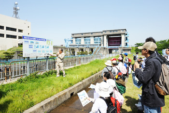 そこで京阪電車は淀川や沿線の魅力を再発見し、美しい環境を守っていく取り組みとして、ボランティアの清掃活動を企画。社員とその家族の参加を募り、2011年5月14日に旧毛馬閘門(こうもん)の施設見学と淀川の河川敷清掃、自然観察会を行いました。