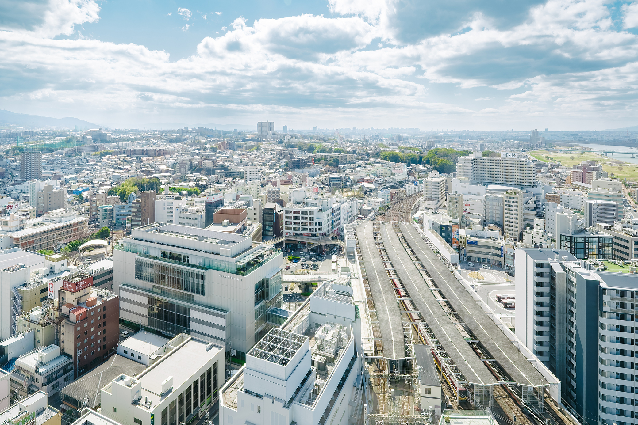 大浅田:まず、枚方市駅周辺の地形的な特徴を踏まえることにしました。「活性化=回遊性の向上」ではないかと考えたからです。枚方市駅のすぐそばには、丘陵や川があり、実は周辺にまちが広がりにくい地形なんです。一方で丘陵や川沿いに道路や交野線が放射状に延びていて、その中心にある枚方市駅は人が必ず集まってくる絶好のスポットです。この立地を活かし、駅からまちづくりを広げていくべきだと考えました。人口減少社会では、施設をつくることを目的とするのではなく、“まちの課題を解決する手段”としてまちづくりをやるべきではないかと。