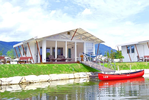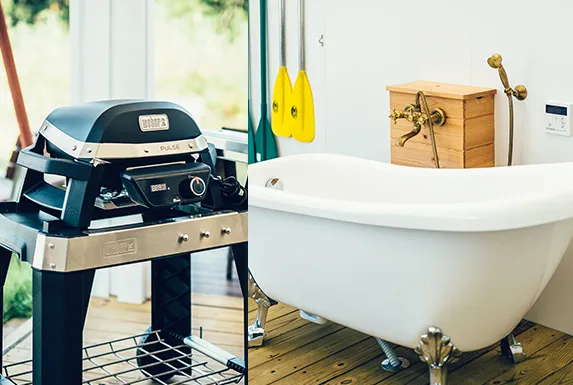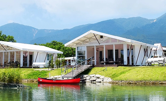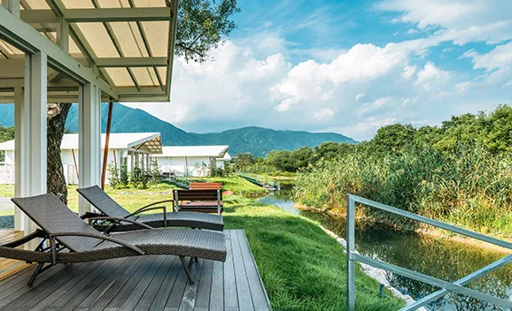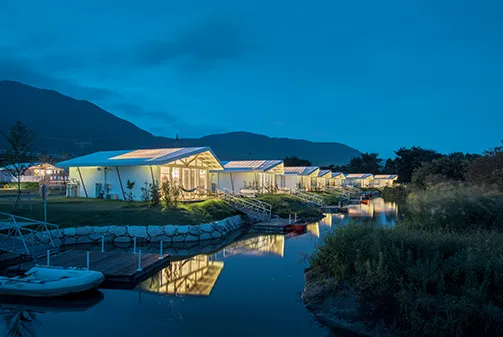 また、琵琶湖の内湖へとつながる水辺に面したウォーターフロントキャビンをはじめ、趣の異なる8タイプ、35棟のキャビンを用意。シャワーやシンク、電気グリル、ハンモックなど、上質な設備を使って贅沢なリゾートステイが楽しめます。さらに、野鳥や水生生物の観察、湿地帯を抜けて内湖へと漕ぎ出すカヌー体験など、春夏秋冬の自然を感じるさまざまなアウトドアアクティビティを体験しながら、心安らぐ時間を満喫できます。