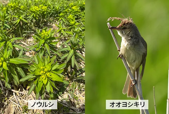 例えば施設内の水路では、調査時に発見したヒトスジキソトビケラという絶滅危機増大種、コセスジゲンゴロウという重要種が、現在もそのまま生息しています。また、敷地内にあった植物重要種のノウルシは、別の場所に移植することで保全に努めました。滋賀県が希少種に指定する鳥であるオオヨシキリの姿も確認できます。