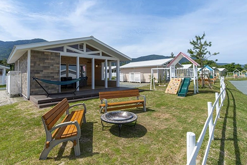 施設内の植栽や石積みは、地元の造園業者や石材職人に協力していただき、近江舞子の風土を感じられるよう設計。アウトドアリゾートの整備を通じて、近江舞子の豊かな自然を守りながら、にぎわいで地域の暮らしや営みにも持続性をもたらすことを目指しています。