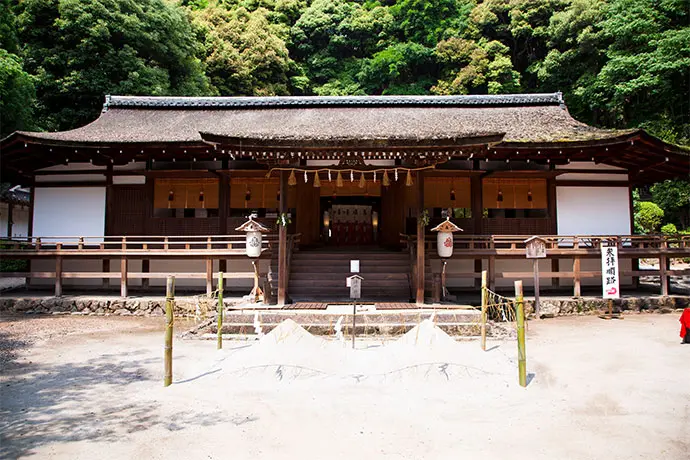 神社建築では日本最古の本殿を有し、世界文化遺産にも登録された神社。国宝でもある拝殿には鎌倉時代前期に伐採された桧、同じく国宝の本殿には平安時代後期に伐採された木材をそれぞれ使用し、優れた建物遺構を垣間見ることができます。御祭神は菟道稚郎子(うじのわきいらつこ)・応神天皇(おうじんてんのう)・仁徳天皇(にんとくてんのう)の3柱。境内には宇治七名水のひとつ、桐原水が湧いています。