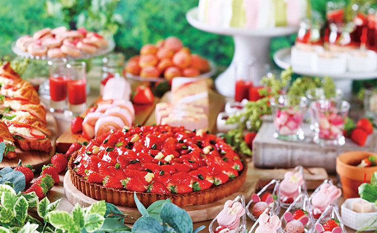 琵琶湖ホテル2階の『レストラン ザ・ガーデン』では、春限定のビュッフェを開催中です。イチゴ3種類の食べ比べプレートとウェルカムドリンクに始まり、イチゴをアレンジしたスイーツやセイボリーを含むフードメニューがビュッフェスタイルで楽しめます。干支にちなみ、かわいらしいウサギモチーフのスイーツも登場。4月9日(日)までは滋賀県産イチゴ「みおしずく」が抽選で当たるイベントも開催。