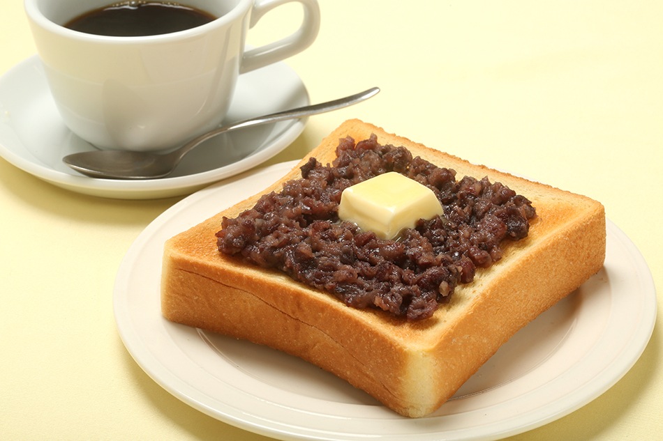 名古屋の喫茶店モーニングで選べる「小倉トースト」のイメージ。
