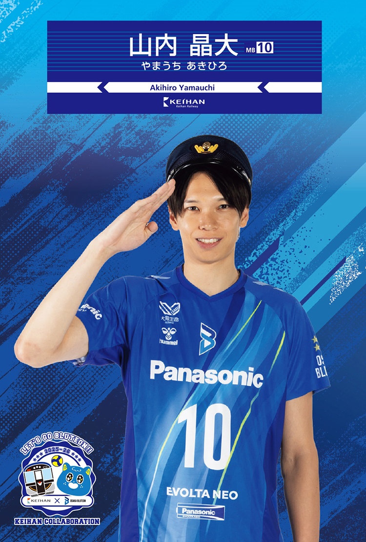 京阪電車の制帽姿がかっこいい、大阪ブルテオンの選手のオリジナルカード!