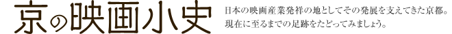 ![[京の映画小史] 日本の映画産業発祥の地としてその発展を支えてきた京都。現在に至るまでの足跡をたどってみましょう。](/navi/kyoto_tsu/img/201111/intro.gif)