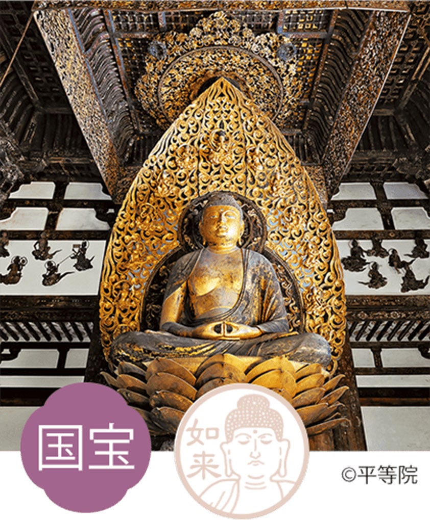 平安貴族が「仏のお手本」と絶賛した仏像で、現存する仏像では唯一、仏師・定朝(じょうちょう)作と確定しているもの。寄せ木造りによる美しい造形は、定朝様として後世のお手本となりました。