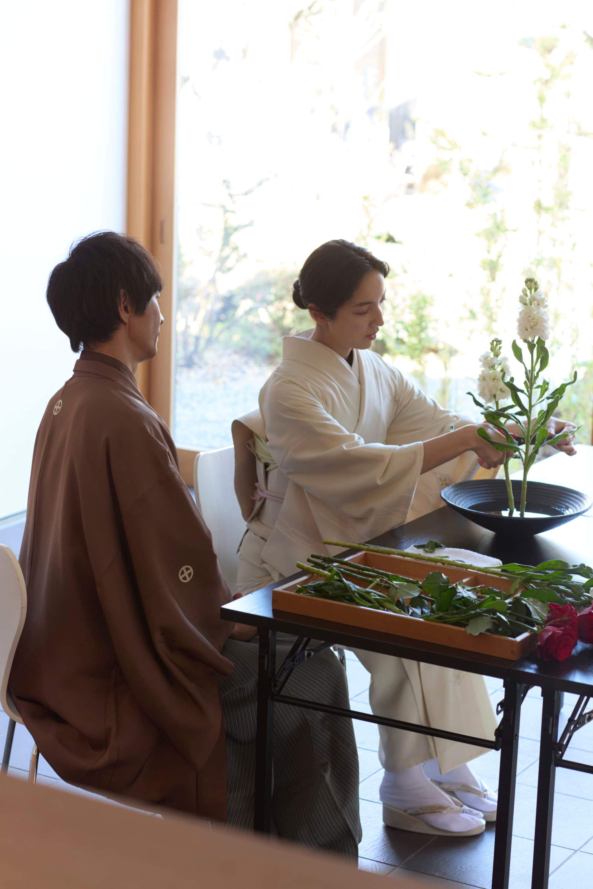 - 今日実際にいけばなを体験して感じたのが、アレンジのすごさとか、そういうことではないんだなということでした。なんというか、空間というか、空白というか…。花の命の流れみたいなものを見ていらっしゃるんだなって感じて。生き方や精神、そういう心の部分がとても大きいんだなと、今日お話を伺って思いました。