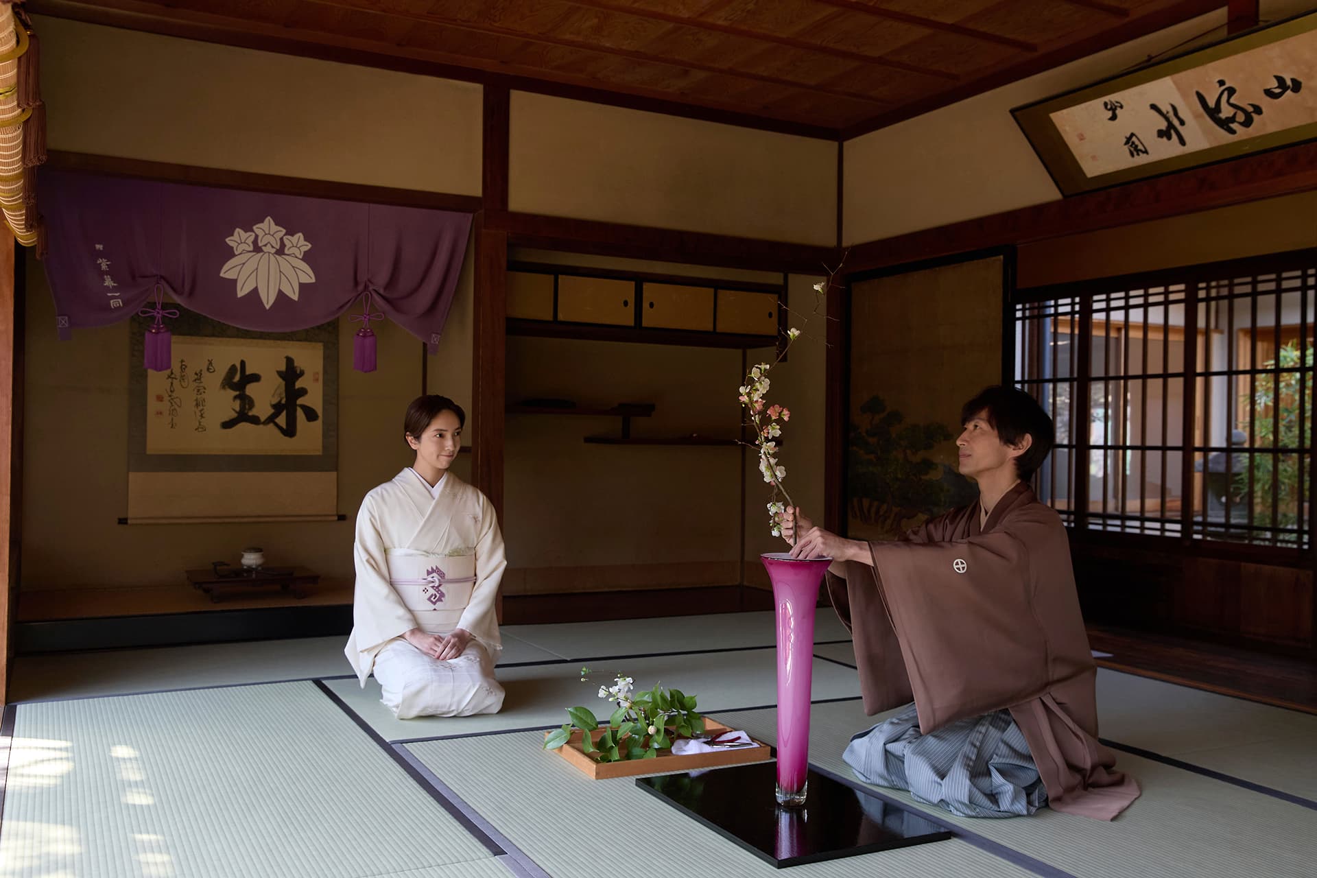 俳優 仁村紗和さんが訪れたのは、京都・未生流笹岡家元邸。