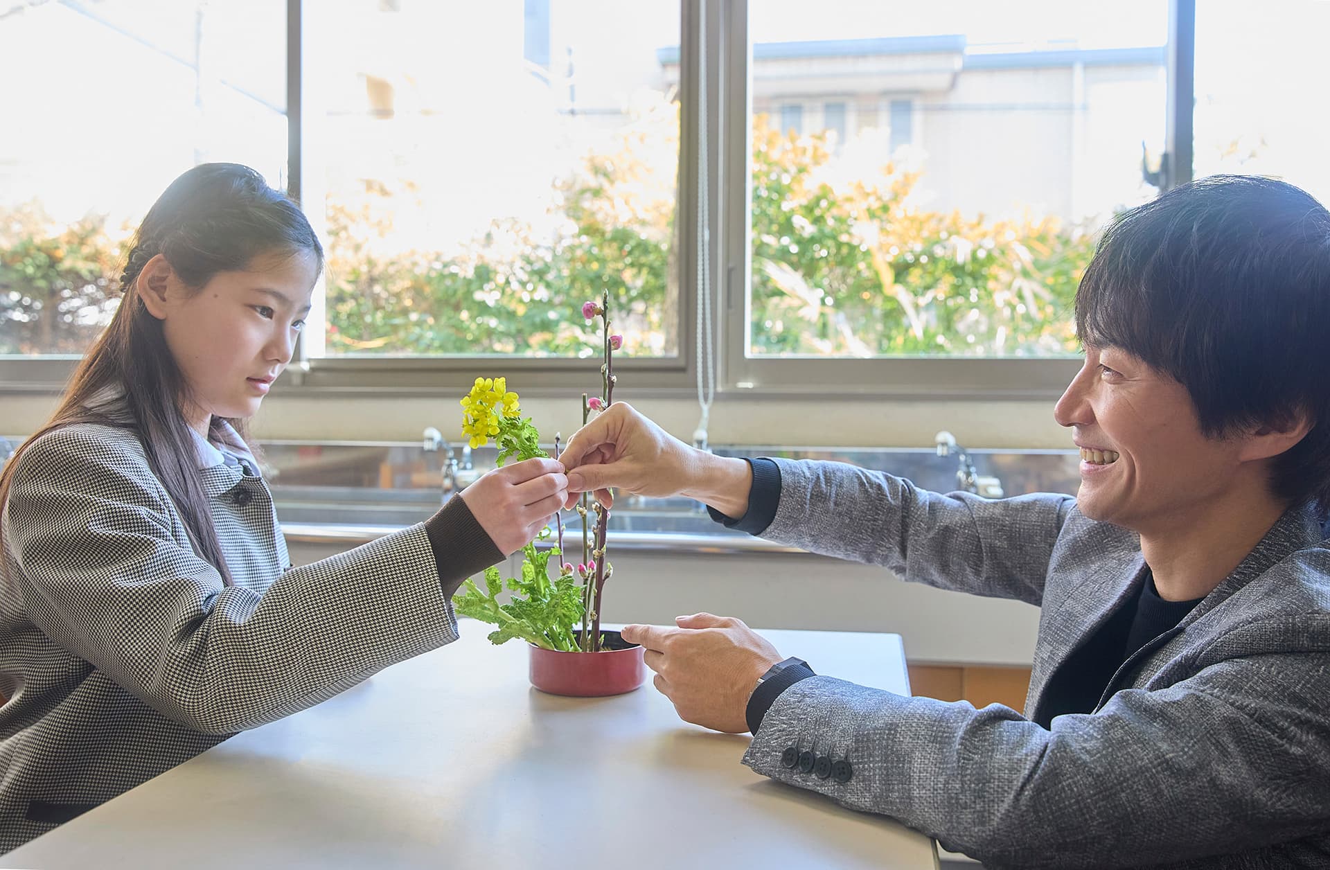 - そうですね。花と向き合う…その向き合い方、でしょうか。最初に子どもたちに「いけばなって想像力ですよ」という話をするんです。