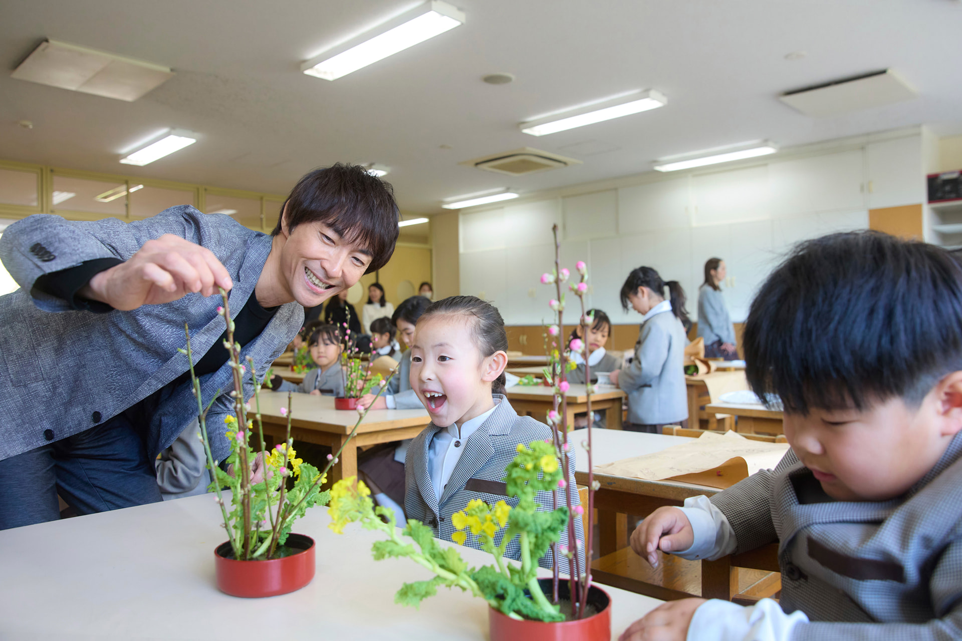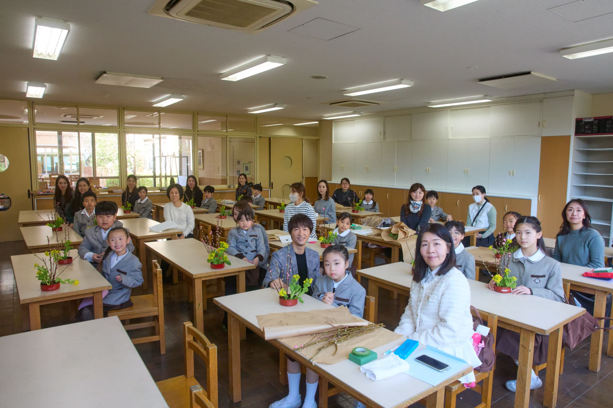 笹岡氏が次世代へいけばな文化を伝える真摯な姿をノートルダム学院小学校で撮影。