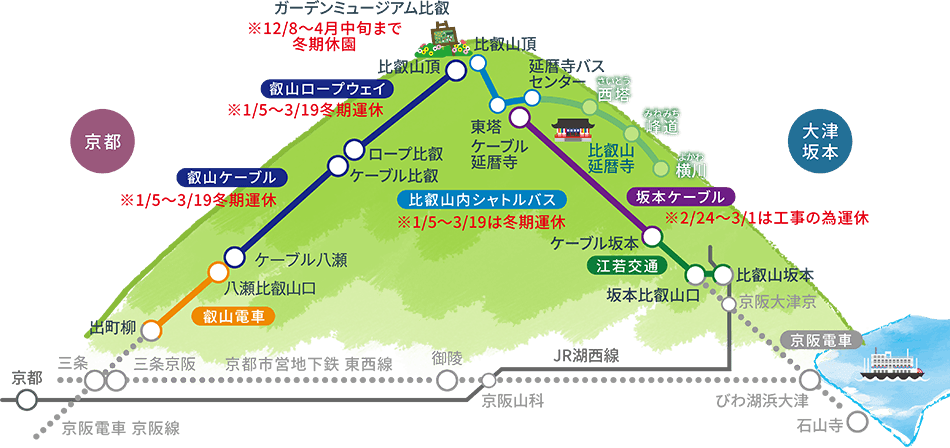 スマホで簡単に購入と乗車ができ、スムーズでおトクな比叡山旅が楽しめます