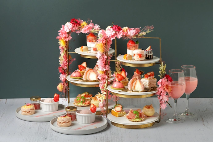 1階の「ERUTAN RESTAURANT / BAR」にて、桜と苺をテーマにしたアフタヌーンティーとパフェが登場。アフタヌーンティーは桜香るモンブランや苺大福などが美しく盛られ、パフェは桜やいちごにチーズやよもぎも覗くすてきな仕立て。いずれも4月15日(水)まで。