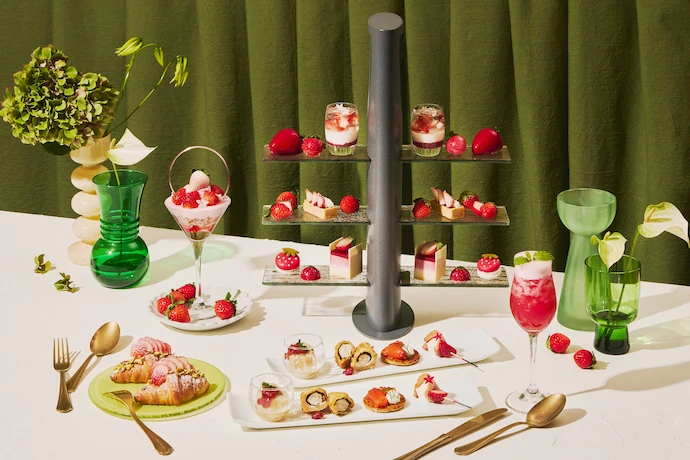 4月12日(日)まで、カフェ&バー「TEA AND BAR」にて期間限定のアフタヌーンティー「ストロベリー・パルフェ・アフタヌーンティー」を開催中。春限定の白いちごや桜が香るウェルカムデセールのパルフェをはじめ、いちごづくしのスイーツやセイボリー、クロワッサンサンドなどが約30種類のドリンクフリーフローとともに楽しめます。