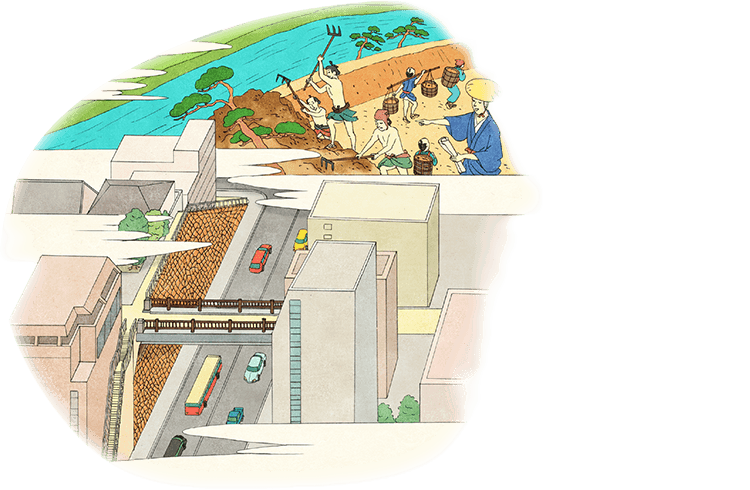 豊臣秀吉が、京都~大坂を結ぶ最短陸路として1596(文禄5)年に整備させた堤防。守口宿にはその一部が現存し、当時の面影を偲ぶことができます。
