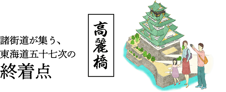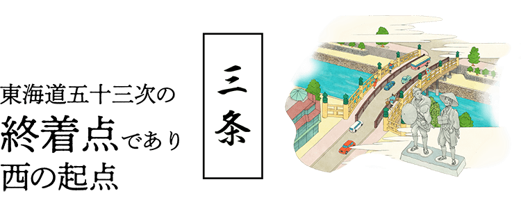 幕府直轄の公儀橋の中でも特に重要視された橋。東海道五十七次の公式な終着点で、現在の青銅の擬宝珠が名橋の歴史を物語っています。