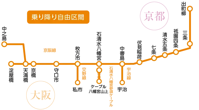 京阪線全線、石清水八幡宮参道ケーブルが1日乗り放題