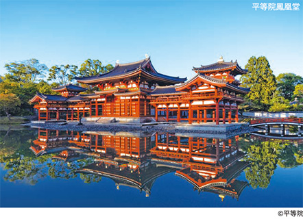 1052年由藤原賴通開創的寺院。不僅列入世界文化遺產,還有許多國寶。其中的鎮寺之寶就是日本十圓硬幣上描繪的鳳凰堂。安置有佛師定朝製作的阿彌陀佛坐像的御堂倒映在阿字池中的美妙姿態也是值得一訪。